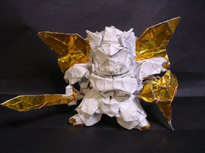 × [PR]上記の広告は3ヶ月以上新規記事投稿のないブログに表示されています。新しい記事を書く事で広告が消えます。 結構前から気になってたんだけど、新世代に投稿されている鳥、若しくは鳥型の翼を持ったものの翼の形。 その多くが、身体の付け根から放射線状に羽根が生えているような造形に見えるんだけど、鳥の翼の構造はちょっと違うと思う(造形の解釈の違いがあるかもしれない、ただ、知らない可能性が高い気がした)。 ので、ちょっと描いてみたのが左図。 人間で言うと、手を地面と平行に上げて、肩から手首まで下向きに羽根が生えている。 そして指を広げた状態の親指も地面と平行に向けたときの 指の向きに羽根が生えているというイメージ(あくまでイメージ) もっと調べたい人は「鳥 翼 構造」とかでググってみよう。 ちなみに空想動物なんかに限っては、どんな見た目でも結局は空想。 ある程度固定されたイメージはあるかもしれないけど、最低限必要なパーツさえあれば、後は作者の解釈により、要するになんでもありだと思います。 なので、別に絶対翼をこういう構造に、とは言わないけど、作者が鳥の翼をイメージしたのであればこの方が望ましいんじゃないかと、そう思ったのでありました。 これはガンダム折紙企画とは関係が無い。 それより以前に「SDガンダム外伝」好きな折れが個人的に創ったもの。 かなり無茶な折りをしまくっているので、もう二度と折れないかもしれない。 「ガンダム顔」というのが1つ壁になっていたのを、なんとか内部カドでそれっぽく作ってある。 ちなみに尻尾があるので三点立ちで自立可能・・・と言っていいのだろうか。 なんだかちょっと思い出深い作品だったり。 ちなみにあんまり関係ないけどこれは買うつもり。 騎士→三種の神器(フルアーマー)→バーサル騎士→スペリオルドラゴンの可変ができたら5万まで出す。 いやむしろ最後のスペリオルは スペリオルドラゴン→スペリオルドラゴンEX→スペリオルドラゴンSR→スペリオルカイザー→太陽神ゴッドカイザー→Sスペリオルドラゴン→黄金神スペリオルカイザーと・・・いや、頭身変わりまくってるけどw あとアルガス騎士団だよなあ。揃えて並べたら鼻血出るかも。