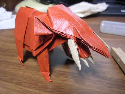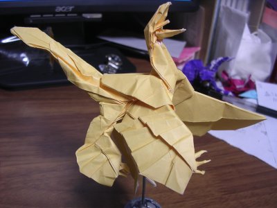 古生物はミクロラプトル・グイを折ったんですが書きましたっけ? 構造は昔こいつを折ろうとして考えたものなんですが、当時は実力不足で形に持っていけなかったものです。それを今弄ればいける気がしたのでやってみたらできました。 できたのは行きの飛行機内で、折ったのはNYに着いてからでしたがw 有り合わせの紙で折ったせいか、仕上がりがイマイチなので折りなおしたいと思ってはいますが、果たしてできるのかどうか。 そもそももう少し改良しなきゃいけないところがあるのに。 他にも折り直さなければいけないのやら折らなければいけないのやら折りたいのがいっぱい出てきてしまった。 折り紙以外にもやらなきゃいけないことがあるし。今月は忙しいのだわ。 とりあえず今からミクロラプトル・グイの改良を行おうと今決めた。