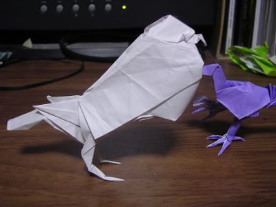 今回も一人でJOASホールへ、開始時間ギリギリくらいで到着。 途中プラモでも買おうかと思ったが時間と手持ちの金を考えて止めておいた。 建物を進むと前方に見覚えのある民族衣装の人影発見。nhさんだ。 一緒にホールに入ると、さくらくんとnao君がもう来ていた。 講習開始は2:10となり、それまでにコカミヤ、モドキ、ささみ君到着。 講習作品は、タイトルがわからなかいけど幾何学系の面白作品が数点。 kawachoさんがいたらはしゃいでいただろうなあと思いつつ、自分も楽しみました。 四時になろうという頃、ふと俺が「そろそろタトさんが来る頃だな」 と、言ったらその数分後に本当にタトさんが来ましたw俺すげえw 情報交換会。 今回はお題であった猫を出してみる。うむ、特に説明することもない。 まあまあ悪くないような評価だったと思う。ここもやはりkawachoがいるべきだと思った。 終了後。次のお題は~という話を時々誰かが出すも、だいたいがスルーされる。 あとは折ったり折らなかったり。濃い話をしたりタトさんの持ってきたカオスに笑ったりこt・・・ 時間いっぱいになったので例のごとくマックへ移動。今回は俺が割引券を持ってきていた。 メンバーは8人いたけどマックの前にモドキ君とさくら君の二人が脱落。 中高生はもう直ぐ試験らしい。残っている中高生に対する突っ込みは無しだ。 マックではタトさん考案の「折紙対戦ゲーム(仮称)」をやってみる。 ルールは一人一折ごとにインサイドアウトで出る両色面の合計領域を一つずつ増やしていく・・・って言葉で説明するの難しいなこれ。 ともかくそのゲームでやたらと盛り上がる俺とタトさん。他の人は置いてけぼりw 俺はタトさんと二戦して二勝。コカミヤくんも参戦してタトvsコカミヤは勝負つかず。電車まで持ち越しになったらしいけど、どうなった? つーかこのゲームおもすれー。問題はたぶんある程度玄人でないと勝負にならないということ。 とりあえず関西コンで広めてみよう。 こんな感じでした。 また来月。 |