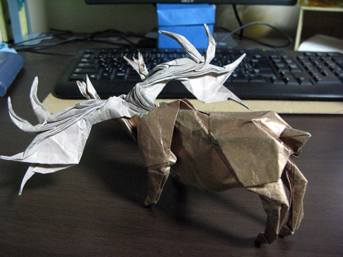 結構前に折ったオオツノジカをちょっといじくってみるテスト。